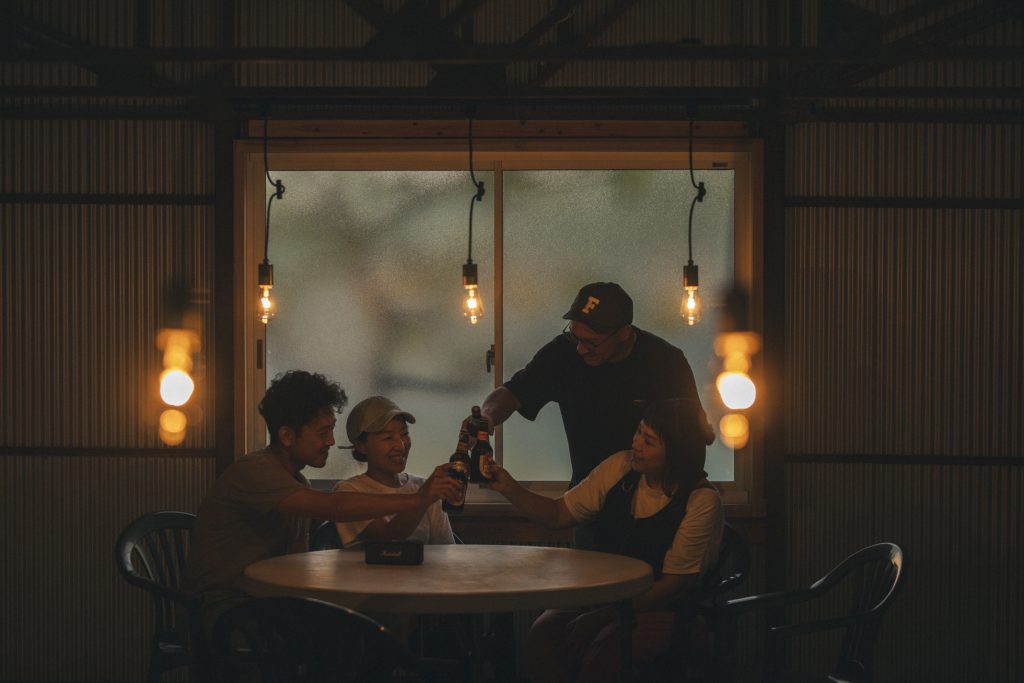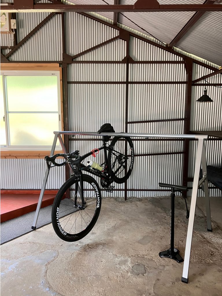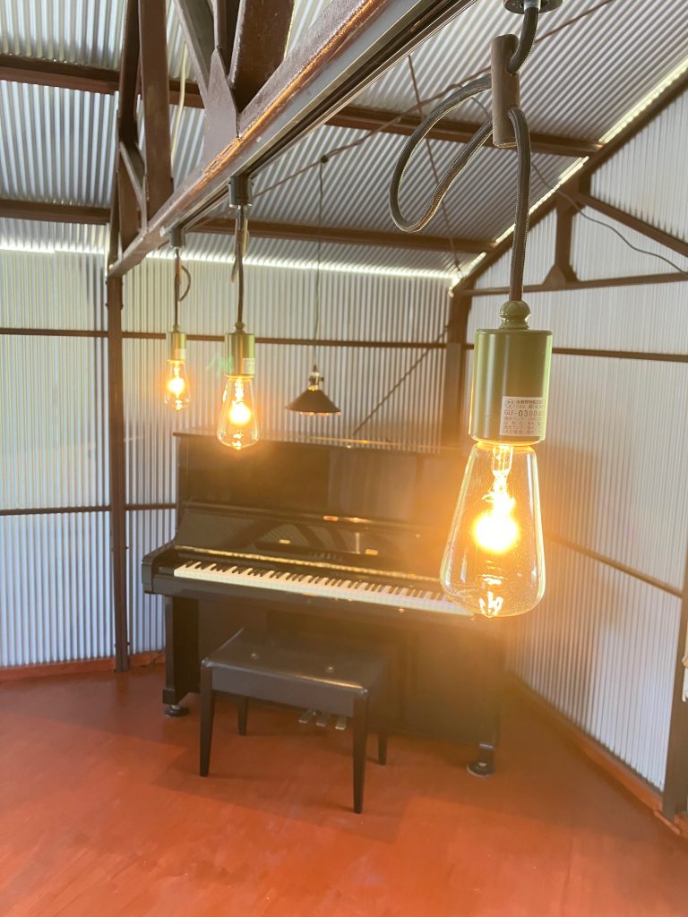 The garage, a converted agricultural warehouse, can also be used as a parking space for guests who come by motorcycle or bicycle (bicycle stands and air pumps are provided). In the evening, you can enjoy a drink under the retro light bulbs in a garage bar-like atmosphere. There is also a piano, so why not play some nice music? (Please refrain from playing after 7pm.)