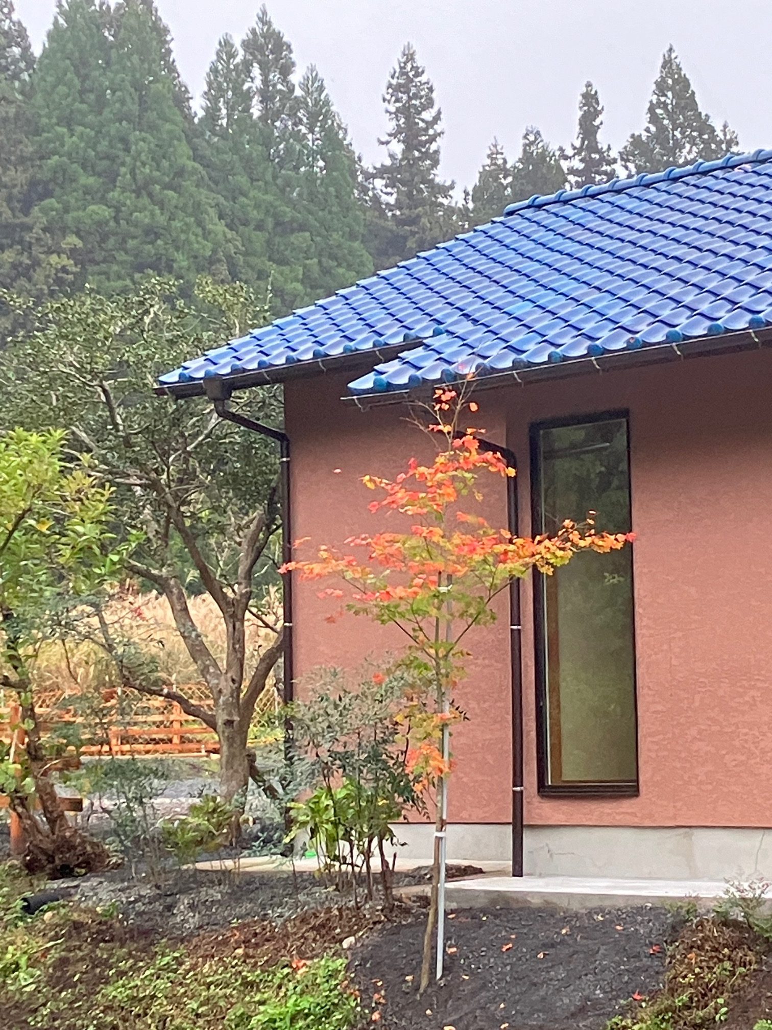 In the garden, which is covered with blue pebbles from Ozu, you can grill food on a barbecue grill (rental available for a fee) and observe the plants and small insects. The stone walls and round, flat stones are from the Niyodo River, known for its Niyodo blue color, and were purchased from a licensed quarrying company. When wet with rain, the stones shine a truly beautiful blue.